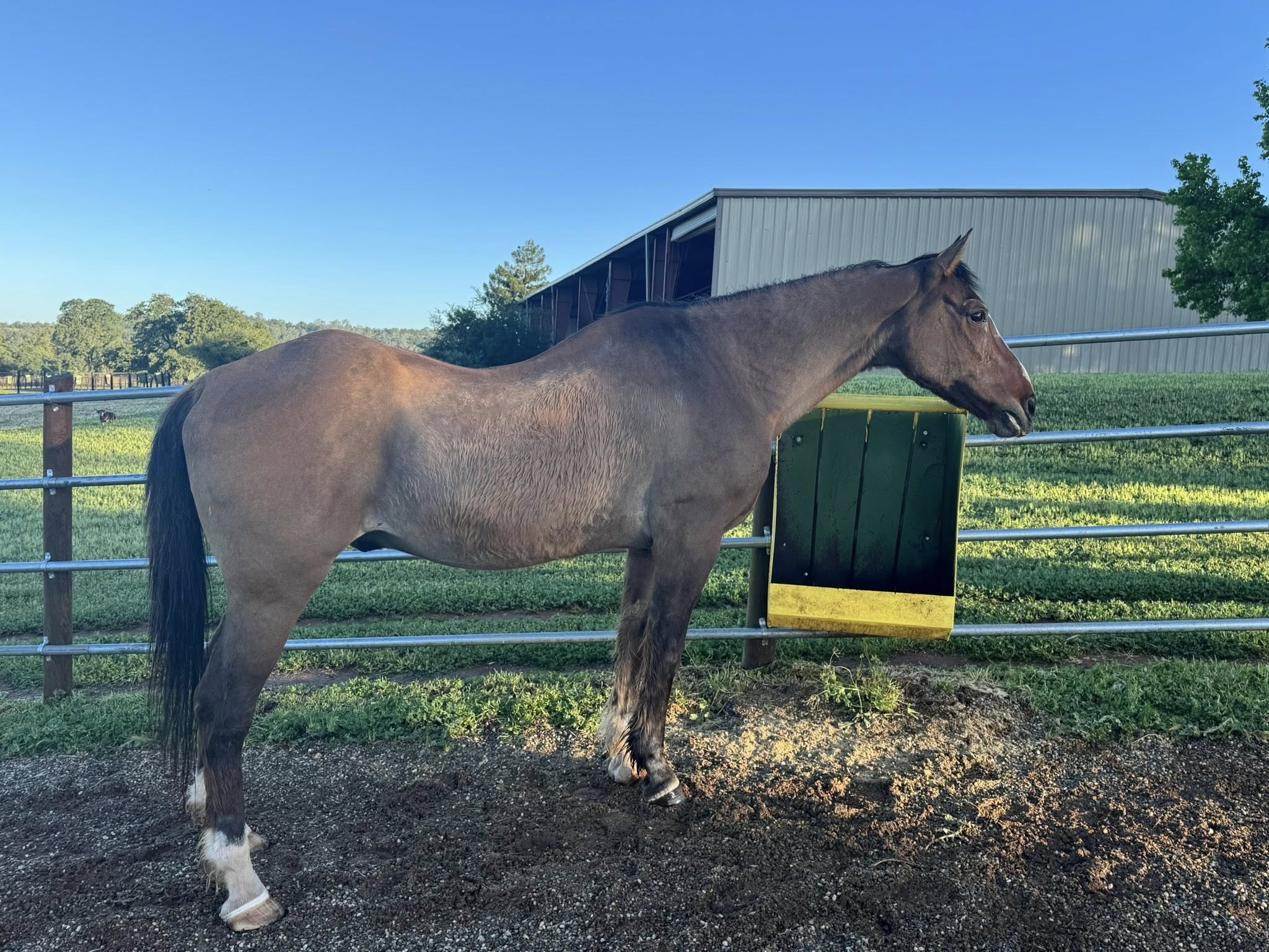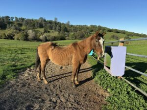 and deserves a retirement in our pastures! Picture on the left is from intake, and on the right is one month later!